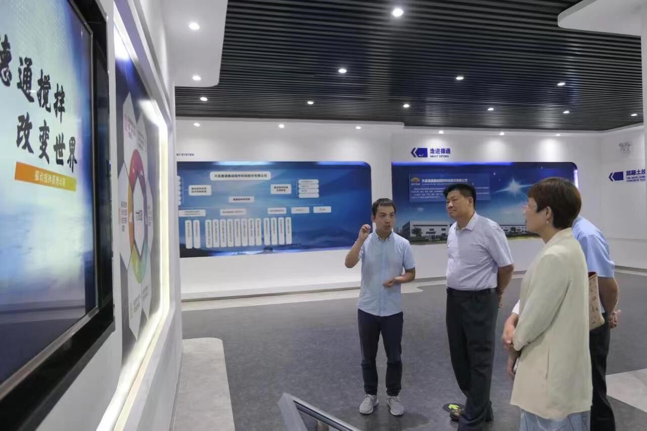 公司副總經(jīng)理孔鮮寧等陪同符忠軒會長一行參觀德通多媒體展廳,匯報振動攪拌技術(shù)研發(fā)及應(yīng)用成果。